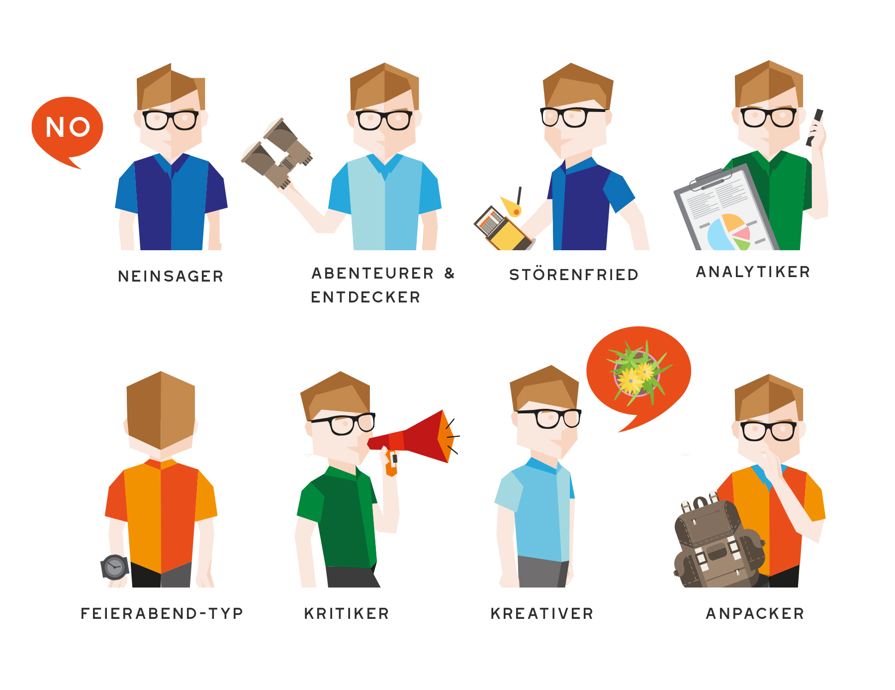 Es gibt unzählige weitere Ansätze und Versuche, Menschen zu kategorisieren, um sie besser zu verstehen oder auch effizienter in Teams einzusetzen. Es gibt Einteilungen in Visionäre und Missionare, aktive Gläubige, Opportunisten, abwartende oder gleichgültige Menschen.² Ich selbst habe mich vor ca. 15 Jahren intensiv mit der Psycho-Physiognomik befasst, mit meinem persönlichen Ziel, die Menschen, ihre Unterschiedlichkeit und ihr Verhalten besser zu verstehen.³ Nach meiner Erfahrung bringen wir mit unserer Arbeit und durch die Projekte IMMER Veränderung in die Organisationen und erleben alle Facetten und Typologien in Projekten.