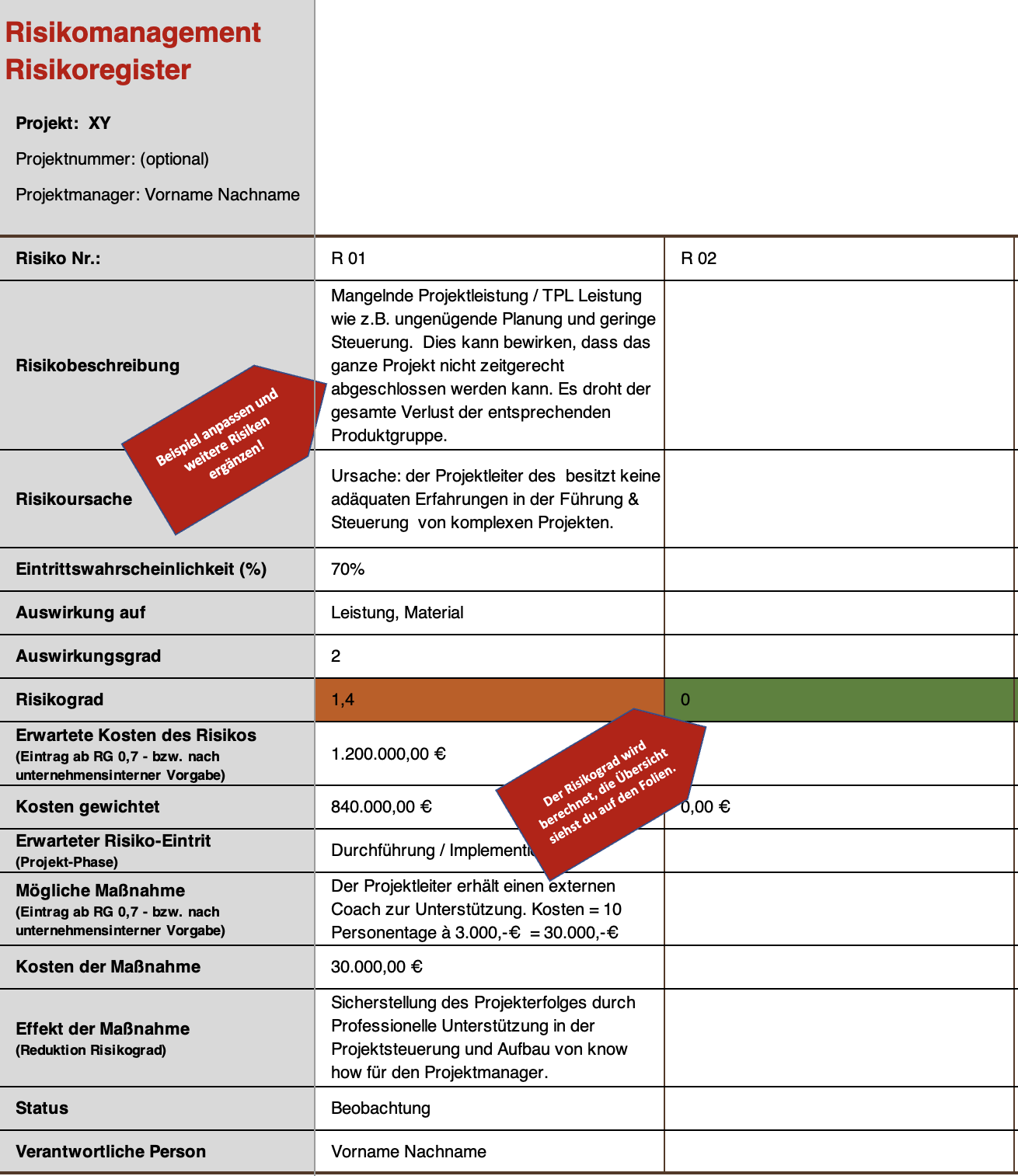 Formal arbeite ich in großen Projekten meist mit einem klassischen Risikoregister: