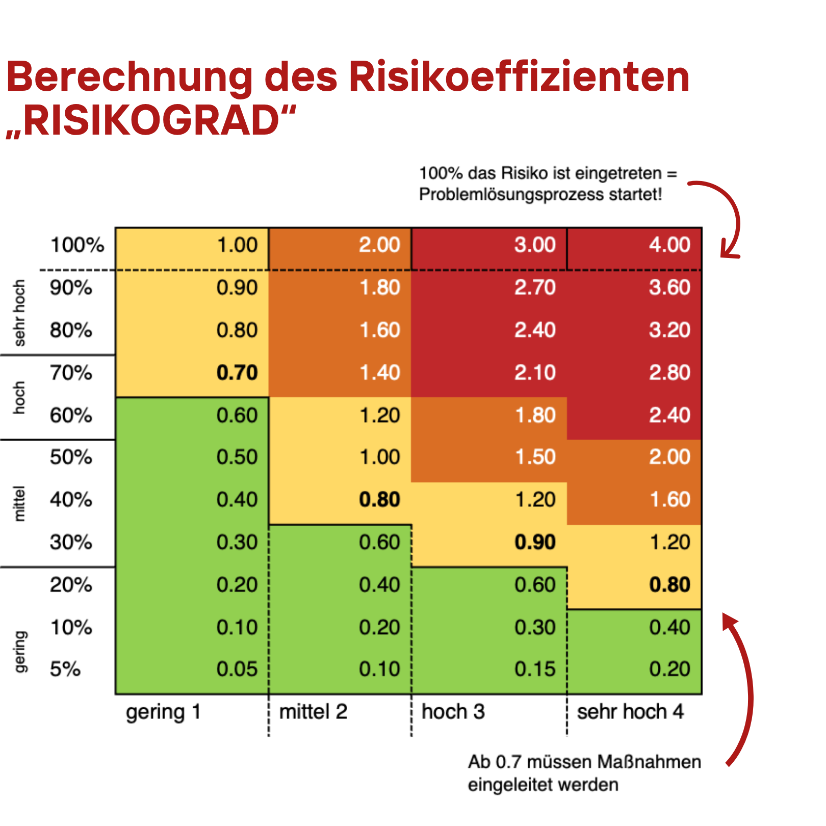 Wenn wir Risiken früh betrachten, Maßnahmen definieren und Termine ernst nehmen, sinkt die Wahrscheinlichkeit einer echten Projektkrise deutlich.